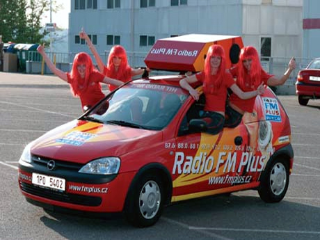 Mnohá soukromá rádia oslovují své posluchače také svými „výlety“ do terénu. Právě k tomu jim slouží vhodně nazvučený vůz, jehož ozvučení se obvykle děje na střeše auta.
