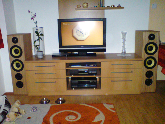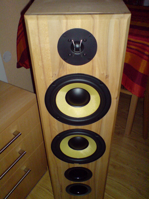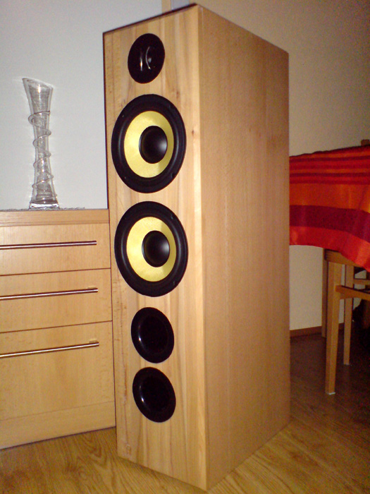 Pro úplnou představu jsem nafotil v průběhu stavby pár fotek. Myslím,že po vzhledové stránce jsou pěkné a všem mým známým se velice líbily. Po zvukové stránce si je netroufám hodnotit a ani nevím pořádně jak je popsat, ale ve mě i všech přizvaných zanechaly hluboký dojem. Hrají čistě, vyrovnaně a s naprostou jistotou i ve vyšších hlasitostech. Náklady na stavbu těchto sloupovek se mi vyšplhaly na 12 000kč, což si myslím, že je slušná cena. A pocit, že vám doma hrají vámi postavené reprobedny, je k nezaplacení!
